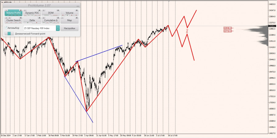 Среднесрочная тенденция: в лонг. Максимальное скопление объемов среднесрочной тенденции расположено в диапазоне по котировкам 22770.0-22870.0 и 23020.0-23120.0. В настоящий момент по #NASDAQ совершаются инвестиционные операции внутри указанного диапазона, что говорит о временной неопределённости.