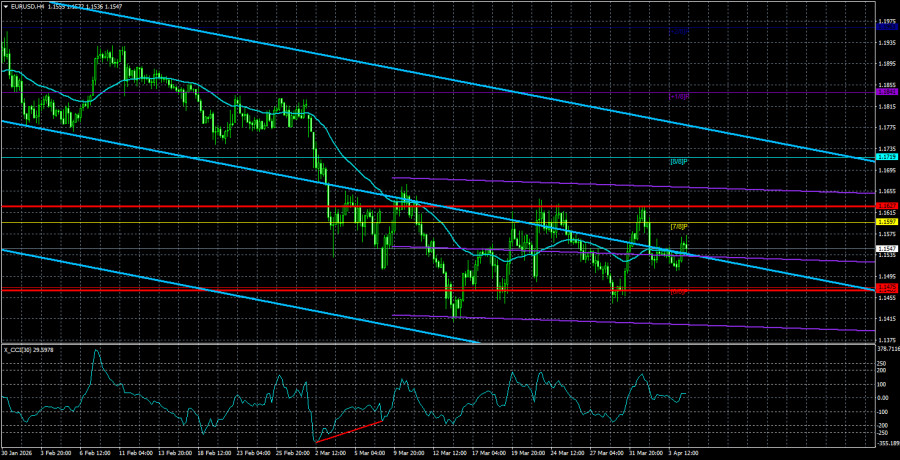 Валютная пара EUR/USD в течение понедельника продолжала торговаться очень слабо и неохотно. В принципе, это не удивительно, ибо по католическому календарю 6 апреля – Пасхальный понедельник. Во-первых, это праздник. Во-вторых, уже 6 апреля Дональд Трамп мог отдать приказ о проведении новой воздушной операции в Иране. Таким образом, трейдеры с самого начала не были настроены на открытие позиций. По прошествии нескольких недель можно с уверенностью сказать, что рынок в принципе уже довольно долгий срок не спешит ни с покупками доллара,