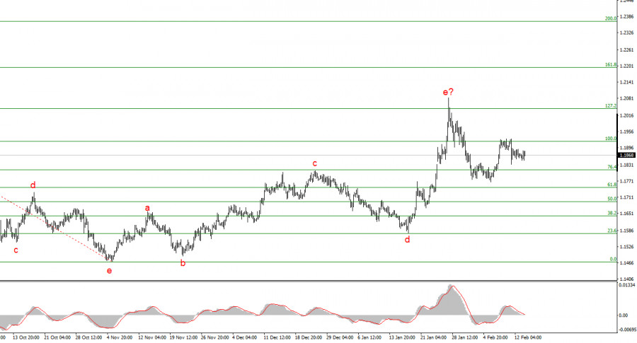 Волновая разметка 4-часового графика для инструмента EUR/USD приняла не самый желанный вид, но вопросов не вызывает. Об отмене повышательного участка тренда, который берет свое начало в январе прошлого года, речи по-прежнему не идет, лишь внутренняя волновая структура время от времени корректируется. На мой взгляд, инструмент завершил построение глобальной волны 4(нижняя картинка). Если это предположение верно, то в данное время началось и продолжается построение волны 5, которая может принять весьма протяженный вид, и цели которой разбросаны вплоть до 25-й фигуры.